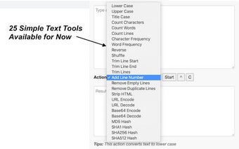 Con Text Tools, puedes cambiar fácilmente el caso de un texto libre, invertir una cadena, eliminar líneas duplicadas o codificar/hashear datos de texto. El proceso es sencillo: simplemente pega el texto que deseas procesar y haz clic en el botón de inicio. La extensión entrega rápidamente el resultado deseado, lo que la hace rápida y efectiva.